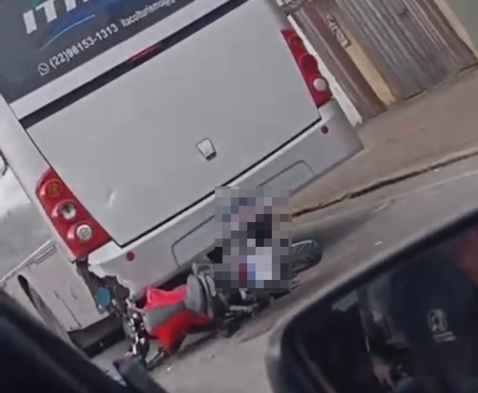 Imagens enviadas ao Manchete RJ mostram que o condutor da moto colidiu na traseira do ônibus que pertence a uma empresa de turismo. Ainda não há informações sobre a causa do acidente.